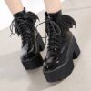 Lace-up Leather Platform Boots – Kawaii Gothic Collection
