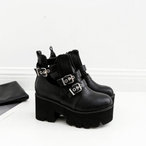 Y2K Punk Leather Platform Boots – Kawaii Gothic Collection