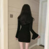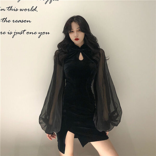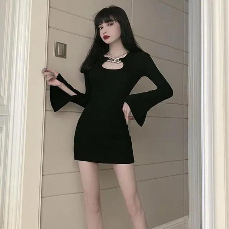 Slim-fit Flared Sleeves Dress – Gothic Aesthetic quantity