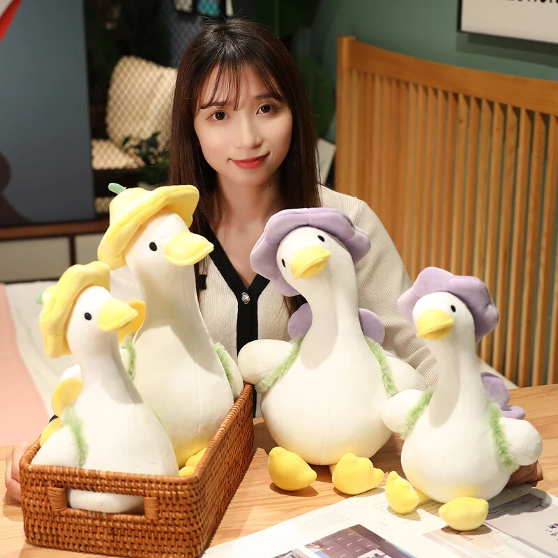 Meet Molly the Little Flower duck plushie with a flower backpack and cute hat, always ready for adventure. Cuddle up with Molly and let your imagination fly!