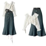 White Shirt Apricot Skirt, White Shirt Black Slip Dress, White Shirt Black Tulle Skirt, White Shirt Denim Braces Skirt, White Shirt Fishtail Skirt