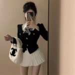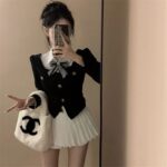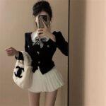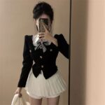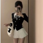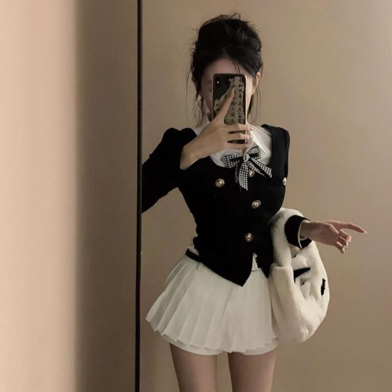 Color: shirt bow tie, black top, skirt, three-piece suit