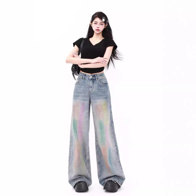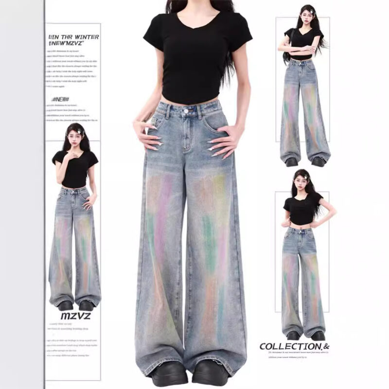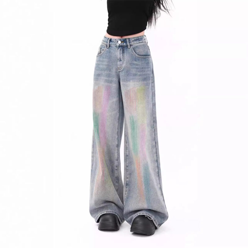 Colorful High Waist Loose Jeans – Y2K Aesthetic