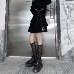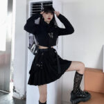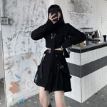 Color: black shirt, black skirt, black two-piece suit