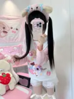 Get ready to sprinkle your outfit with ultimate cuteness! The Kawaii Long Sleeve Striped Shirt combines cozy pastel pink and white stripes with an adorable center design featuring a lovable character snuggling a strawberry~ 🍓✨