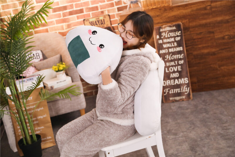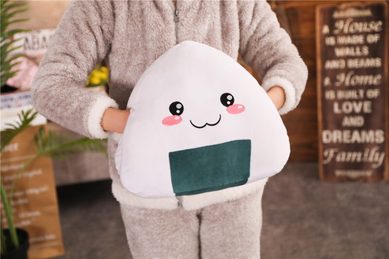 Our onigiri plushie is the perfect size for displaying on a shelf or using as a pillow during long car rides or airplane trips. And, as a bonus, it can also be used as a stress ball to help you unwind after a long day!