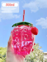 Created with strawberry shape, this water bottle is cute, unique and suitable in outdoor or indoor.