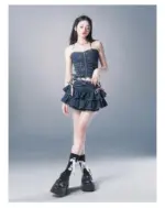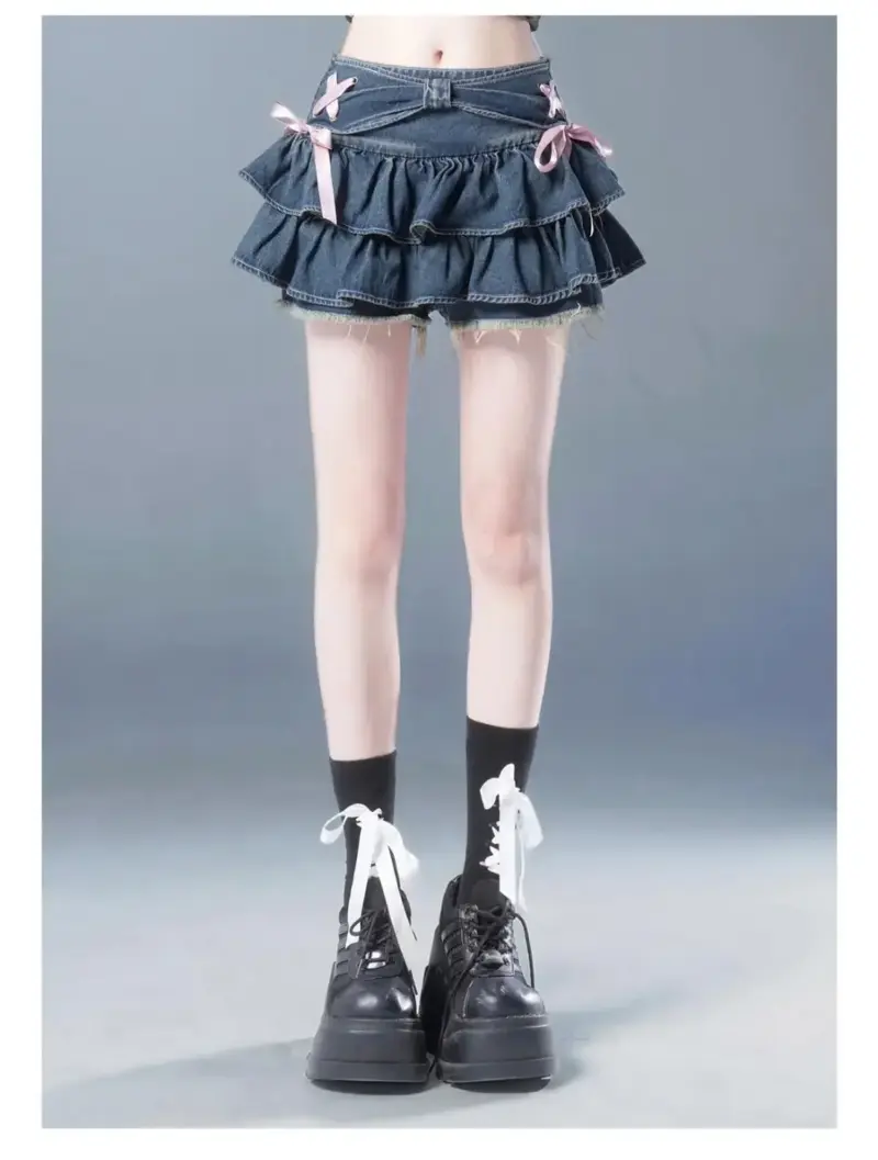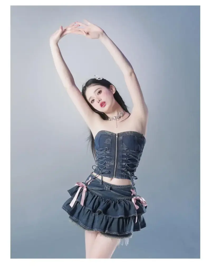 Slip into the Laced Denim Mini Skirt and bring the Y2K dream to life—because who doesn’t love a little cute & sassy nostalgia? 💖(ノ´ヮ`)ノ*: ・゚✧
