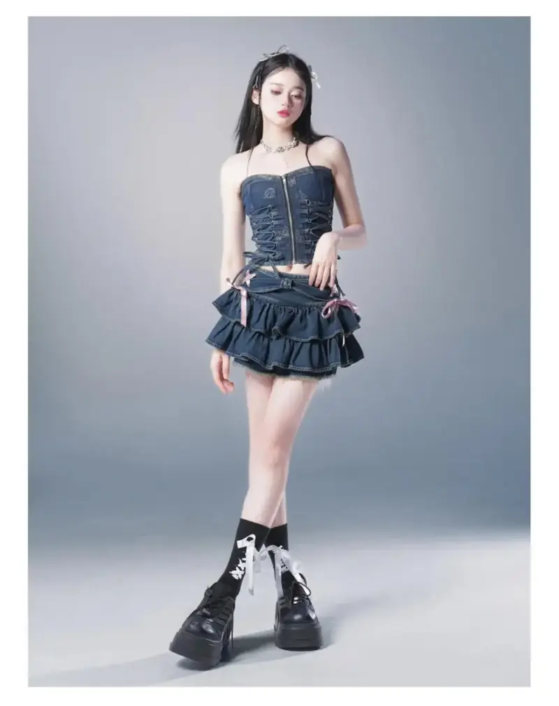💙✨ Laced Denim Mini Skirt – Y2K Aesthetic ✨💙