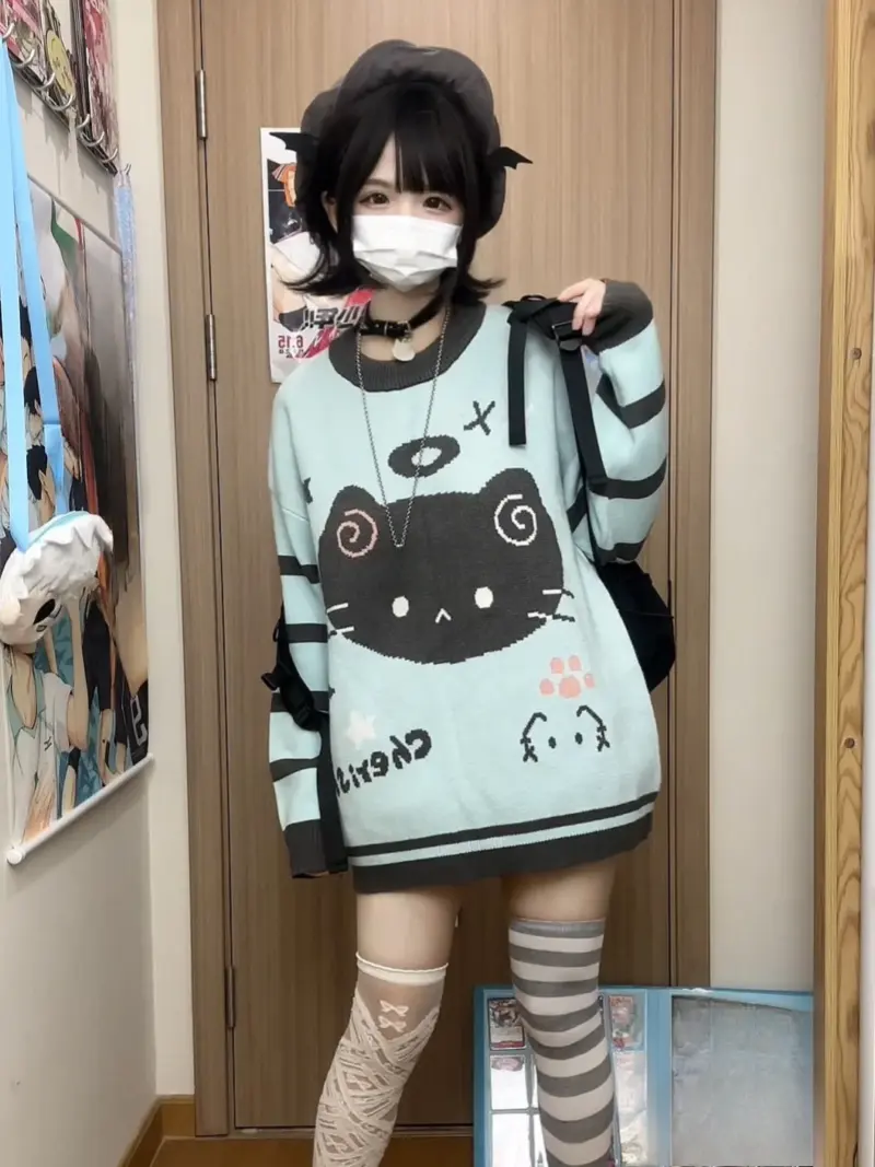 Slip into the Mint Neko Sweater and bring a dash of pastel purr-fection to your kawaii wardrobe~! (づ๑•ᴗ•๑)づ♡🐾💚