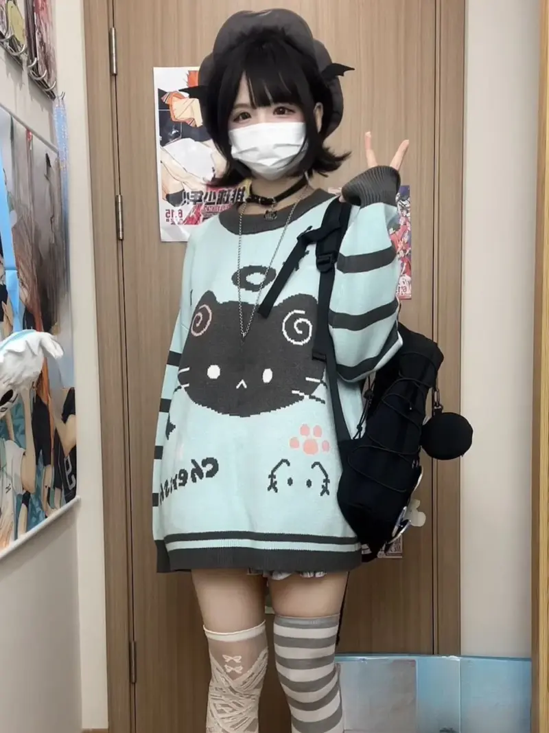 🎀 Loose & Cozy Fit – Perfect for layering or lazy kawaii days~ ☁️🫶