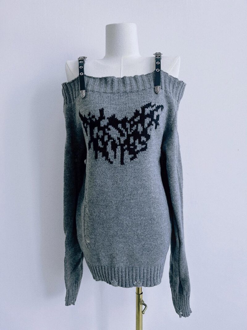 Bowtie Off Shoulder Sweater - Lolita Aesthetic