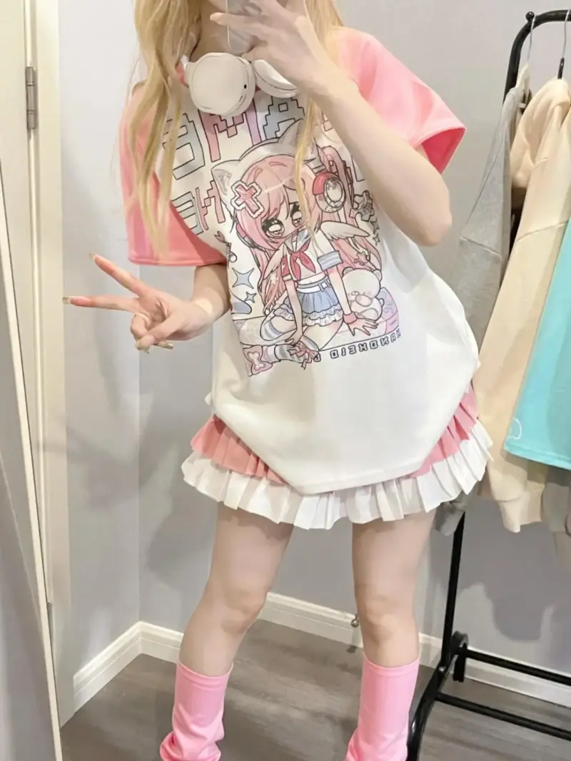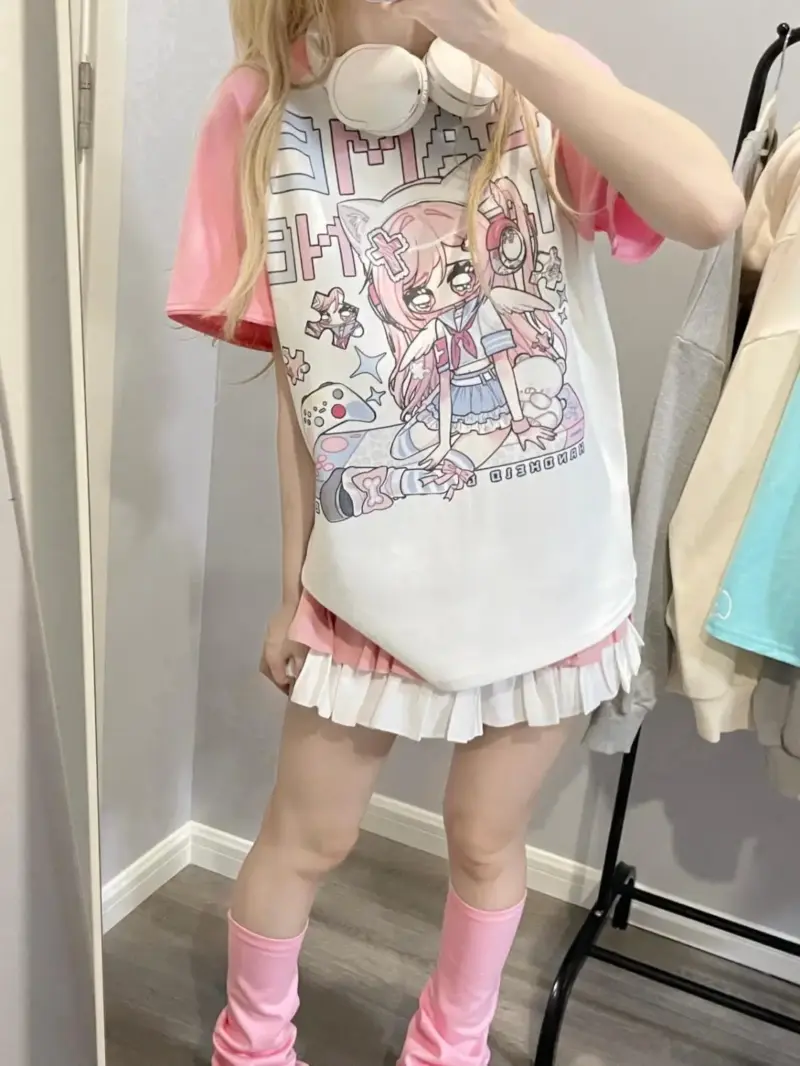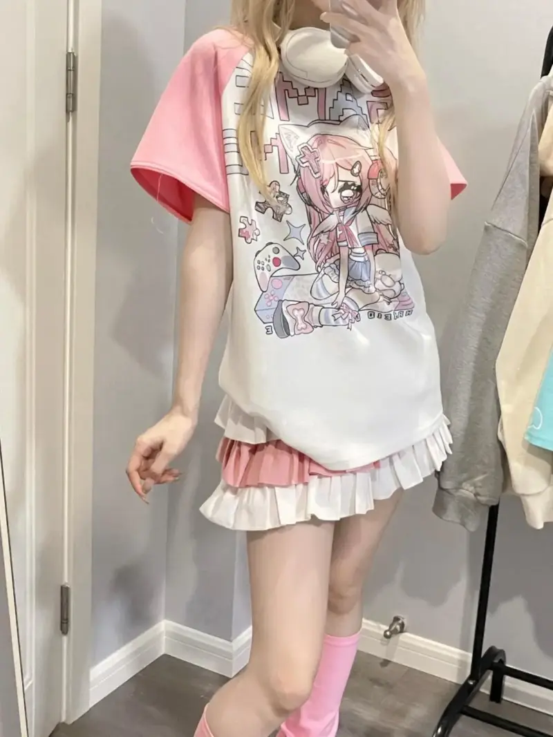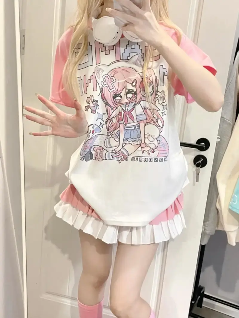 🎀 Printed Pink Kawaii T-Shirt – Cutecore Aesthetic 🌸✨