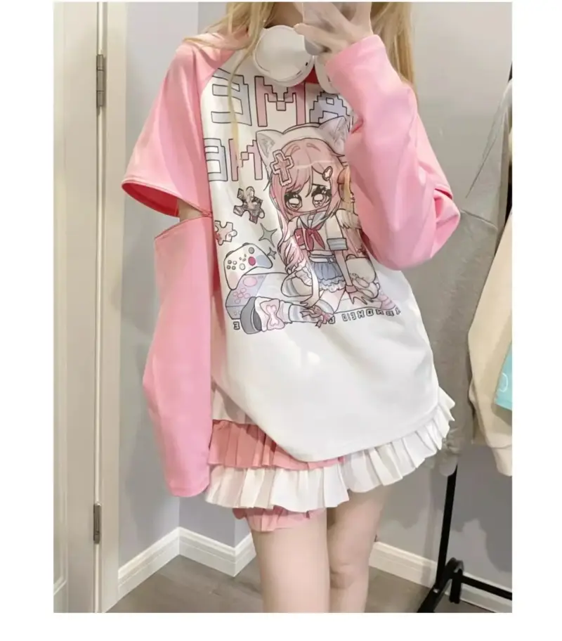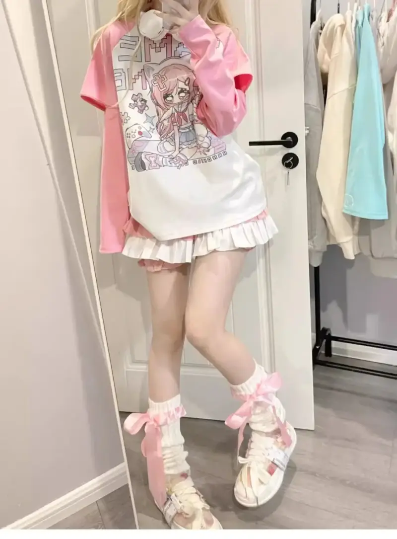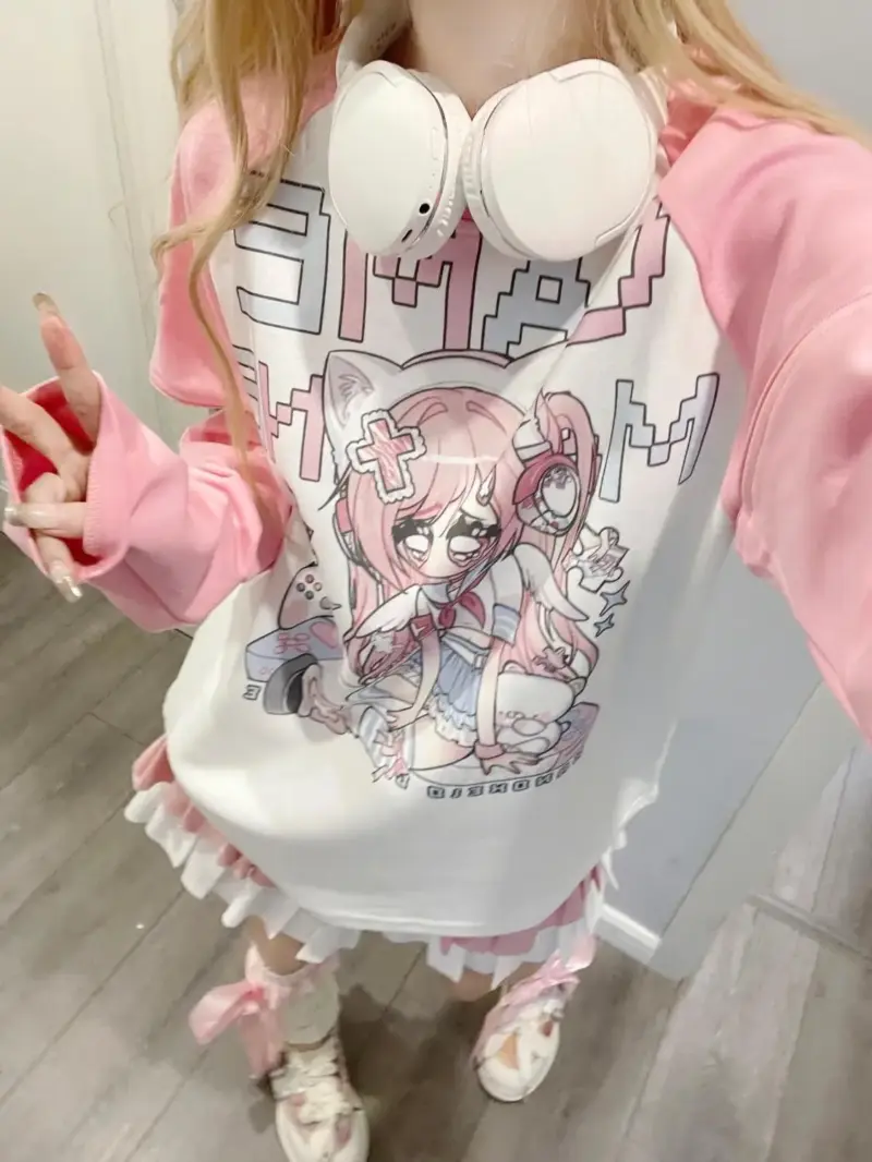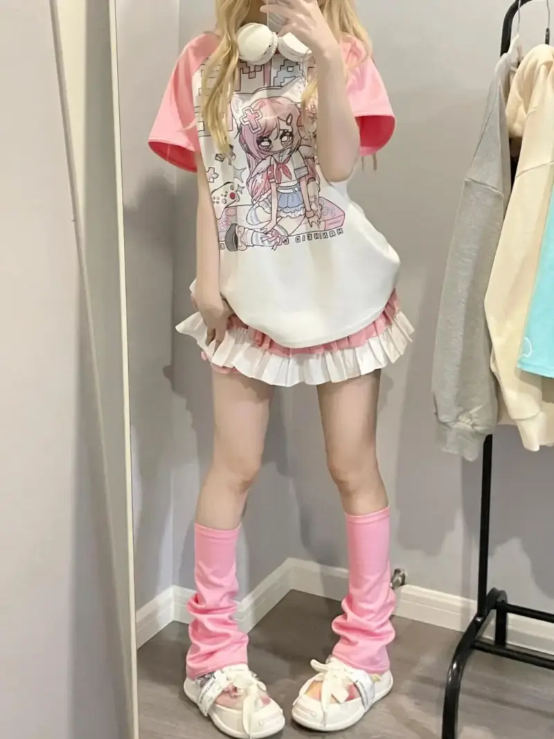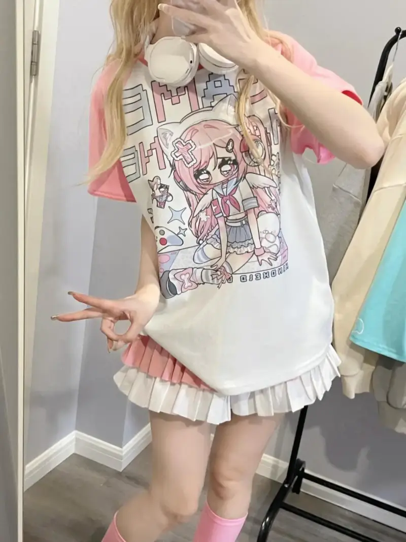 🎀 Printed Pink Kawaii T-Shirt – Cutecore Aesthetic 🌸✨