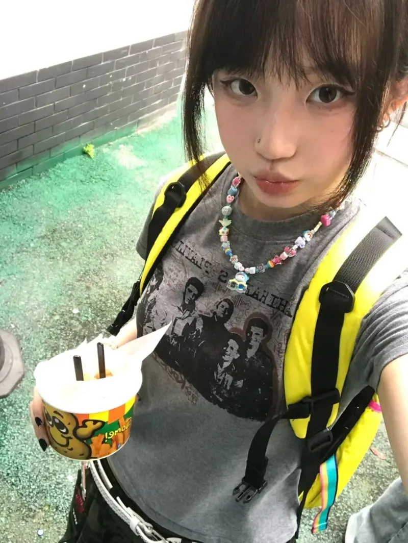Pair it with distressed denim, combat boots, and a choker for the ultimate grunge-kawaii combo! (≖ᴗ≖✿)