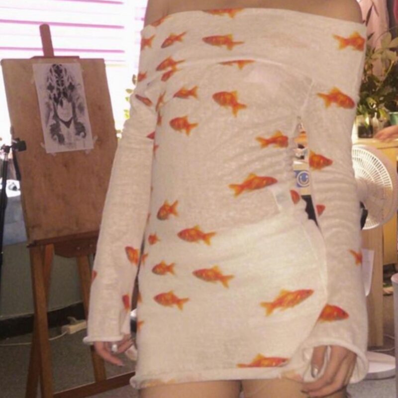 Slim Fit Goldfish Dress – Y2K Aesthetic