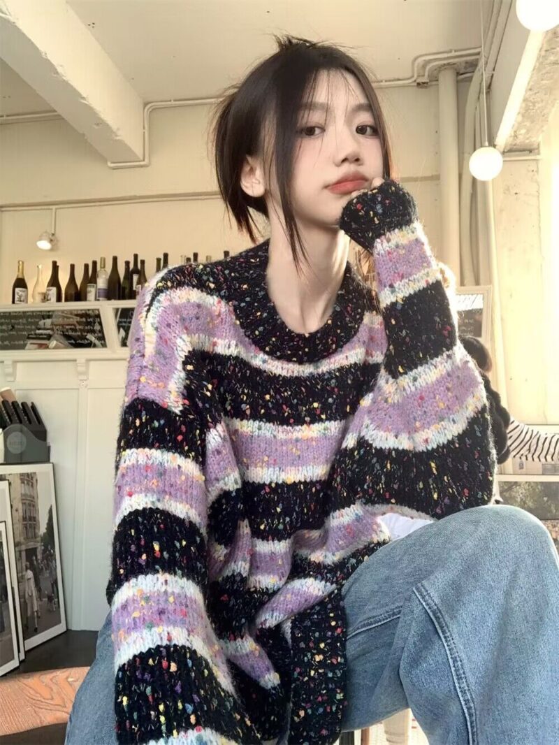 Striped Loose Sweater – Y2K Aesthetic