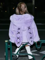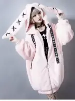 Stay cozy and super kawaii this winter with our Winter Coat Rabbit Ears, inspired by Harajuku fashion! ✨❄️ This oversized fluffy coat is your ultimate statement piece for chilly days, blending comfort with iconic Japanese street style. Featuring adorable bunny ear details on the hood (complete with cross-stitched eyes ✖️✖️) and ultra-soft material that feels like a warm hug, you’ll never want to take it off! 💜🐇